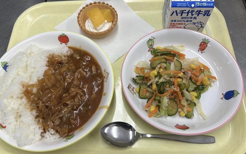 ごはん コーンドライカレー(ルウ) シーザーサラダ みかんゼリー 牛乳 |