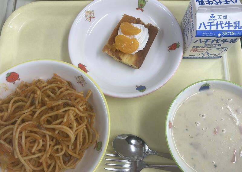 ワタナベさんのナポリタン コーンポタージュ パンケーキ 牛乳 |