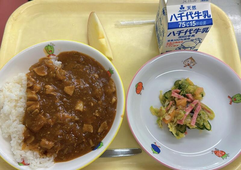 ごはん ハヤシライス イタリアンサラダ りんご 牛乳 |