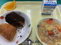 2色揚げパン 洋風煮込み オレンジ 牛乳 |