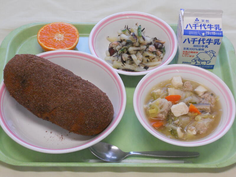 | コメント | ココア揚げパンは、甘さも程よく、ふんわりとしていました。子ども達もきっと喜ぶおいしさだと思います。じゃが芋のシャキシャキサラダは、ひじきやきんとき豆等が入り、またじゃが芋が細長く、食べやすく工夫されていました。さっぱりしていて、おいしかったです。肉団子スープは安定のおいしさでした。 |