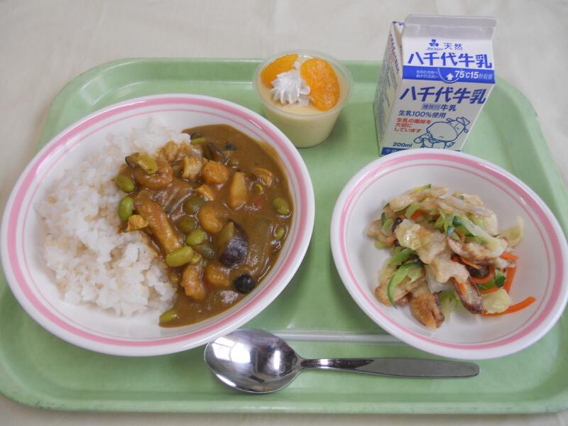 コメント シーフードカレーは、エビ、イカ、枝豆、しめじ等が入り、具だくさんでおいしくいただきました。かみかみハニーサラダは、レンコンとゴボウが一度揚げてあり、きゅうり、人参などとはちみつ入りドレッシングであえてありました。ほんのり甘さも感じ、おいしかったです。おいしい給食、今学期は今日で終了となります。ありがとうございました。