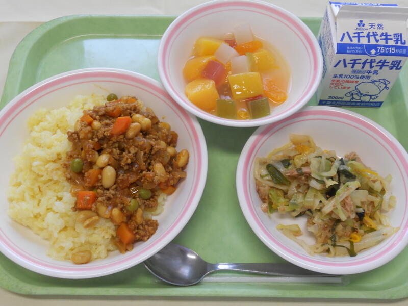 挽肉や大豆等、香辛料がきいており、おいしくいただきました。