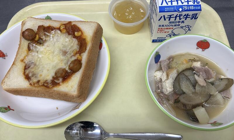 ピッツァぼうやのピザ ようふうにこみ りんごゼリー 牛乳 |