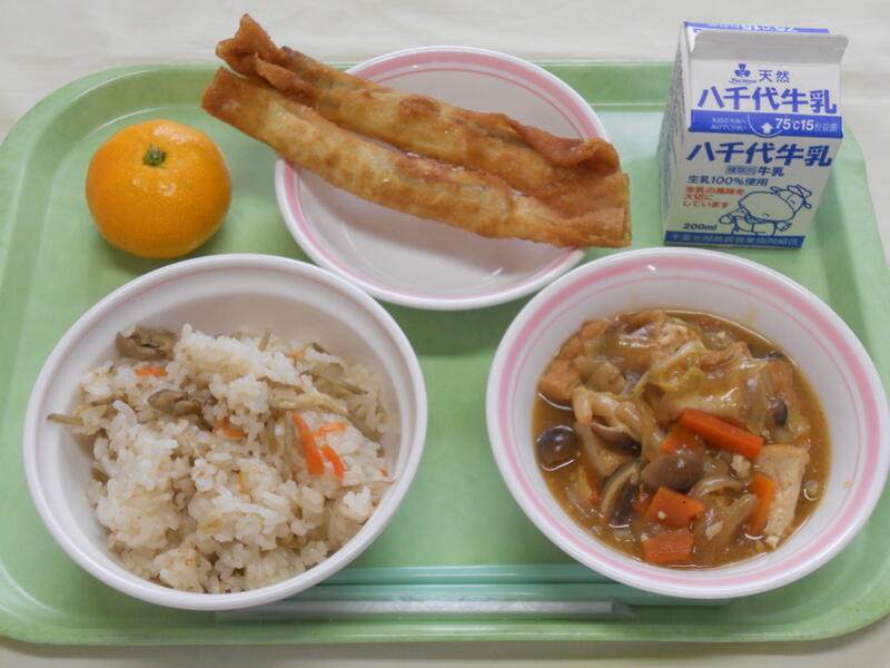 コメント 吹き寄せごはんには根菜が入り、色どりが秋らしくよかったです。ししゃものパリパリ揚げは、ししゃもが春巻きの皮に巻かれていて、そのまま食べるより口も入れやすく、春巻きのパリパリ感も味わえておいしくいただきました。ごちそうさまでした。