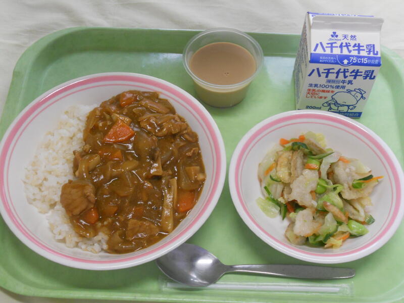 コメント 麻婆なす丼は、なすもよいのですが、長ねぎがシャキッとしていておいしさが増しました。レバーそぼろもよく活躍していますね。少しピリッとしていて、生徒たちもおいしく食べられると思います。デザートのフルーツ豆乳杏仁で、さっぱりとしました。ごちそうさまでした。