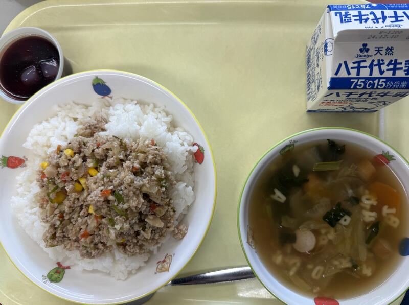 ごはん ドライカレー ABCスープ もものゼリー 牛乳 |
