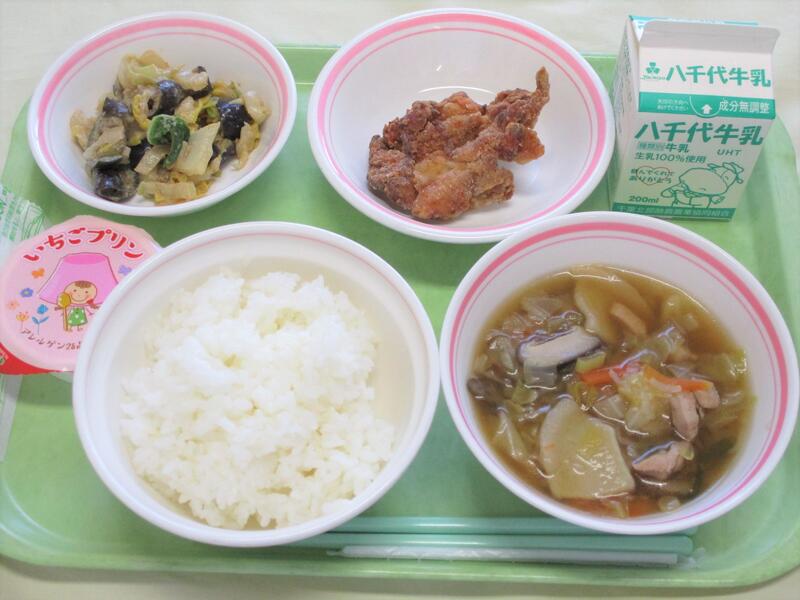 コメント 担々和えは、ピリ辛でおいしいです。トウバンジャンでしょうか(←ラー油です)。鶏のから揚げもサクサク食感で、生徒達もペロリと食べるでしょう。せんべい汁の南部せんべいは、煮込むとなんとも言えない歯ごたえがあって大好きです。野菜から出ただしもきいていて、おいしかったです。