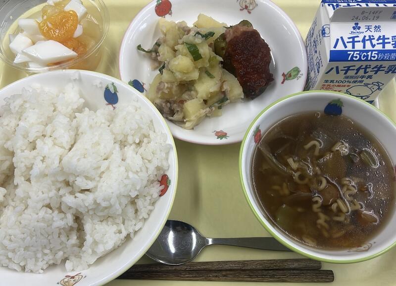ナシゴレン ひじきのマリネ ポトフ ブドウゼリー 牛乳 |