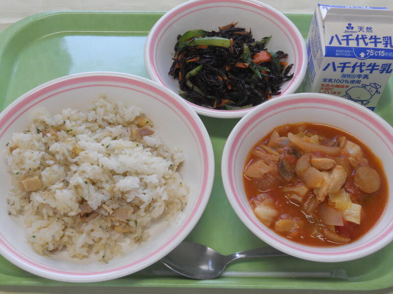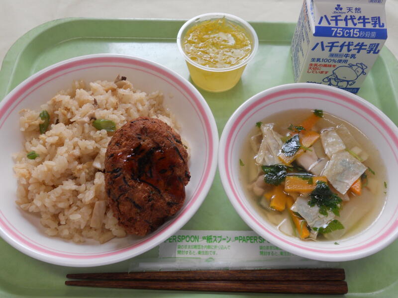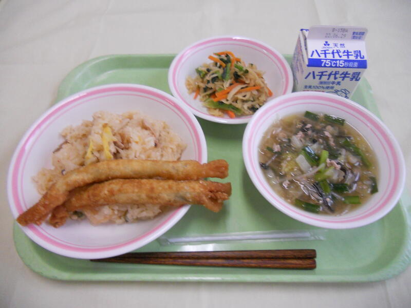 めばるのピリットジャンは、さくさくしていて味もよかったです。 筑前煮は具が多く、よく味がしみ込んでいました。 すまし汁は、優しいお味で、湯葉も入っておりとてもおいしかったです。 ごはんも牛乳も、いつも通りでおいしい給食でした。 |