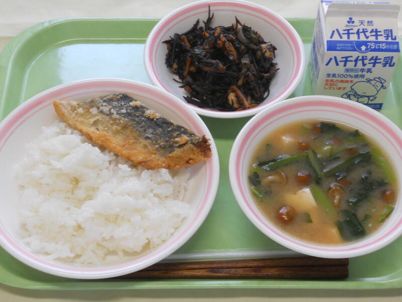 鯖の文化干しはふっくらして身がやわらかく、とてもおいしかったです。 大豆の磯煮は具だくさんで、ごはんによく合う一品でした。 どれも栄養満点で、身体にやさしい給食でした。 ごちそうさまでした。 |