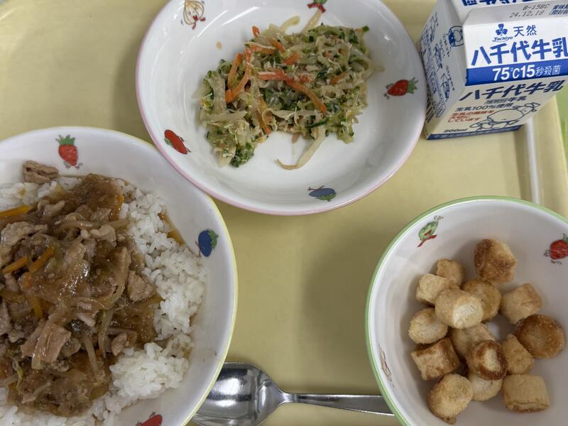 | コメント | 今日は、台湾料理の「ルーローハン」です。ぶた肉を甘めのしょうゆ味で煮込むため、白ご飯にとてもよく合います。台湾では、屋台や食堂にかならずある人気メニューです。使う調味料はチンジャオロースと似ていて、それをさらに甘辛くしたような味です。本場では、ぶたバラ肉のかたまりを大きめの角切りにしますが、給食では食べやすくして細切りにしているそうです。 |