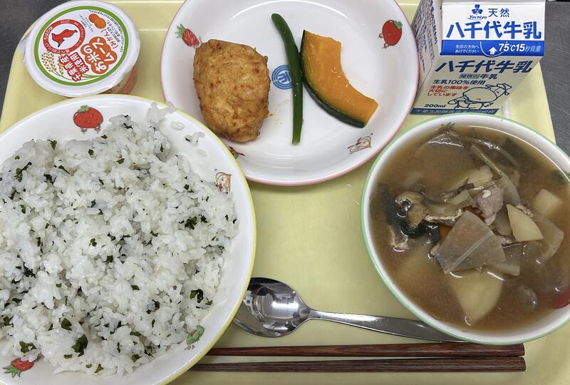 わかめごはん たきあわせ とんじる おこめのムース(みかん) 牛乳 |