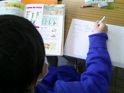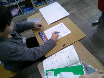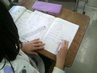たしかめ算までの練習問題に取り組んでいました。