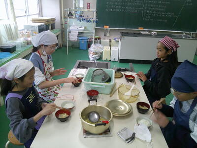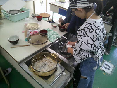 昨日に引き続き、今日もご飯とみそ汁の調理実習を行いました。