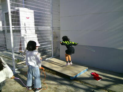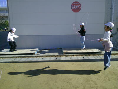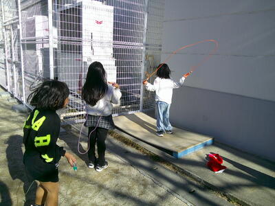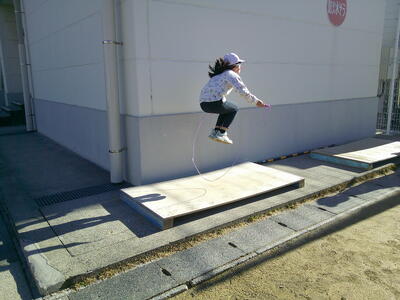 休み時間の様子です。縄跳び台を使って、20跳びの練習に励んでいました。