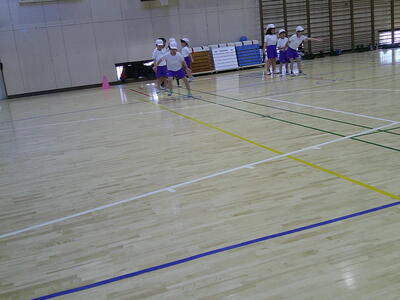チームで考えたリズムで、リレーゲームに取り組みました。