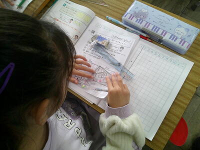 定規を使って、正確に図形を描くよう指導していました。