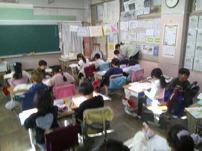 「雪わたり」の学習をしていました。宮沢賢治作品には、たくさんの比喩表現があります。その比喩表現と情景描写について話し合いながら学習をしていました。