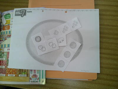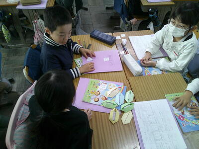 ほしい形をいくつ購入するのか、英語で活動しています。回数を重ねることで形や数、発音が上達していきます。