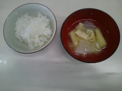 できあがり!ご飯もふっくら、みそ汁もおいしそうにできました。