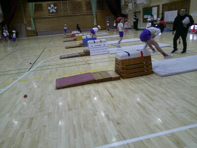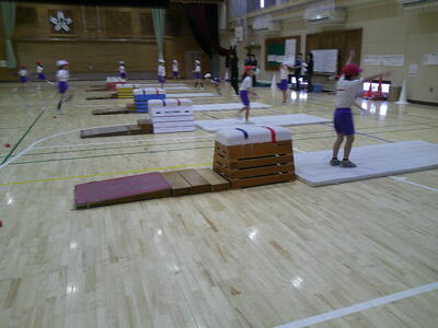 跳び箱運動の学習です。着手の音を意識して開脚とびに挑戦しました。