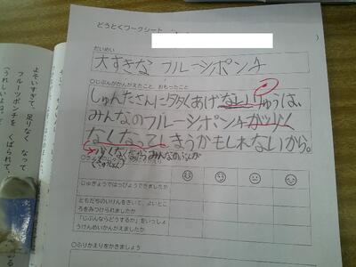 教材文「大好きなフルーツポンチ」を読んで、“公平”について考えました。
