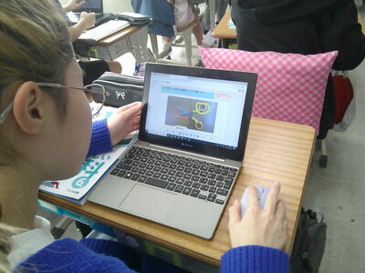 ミライシードを使って教科担任が画像を送信します。子供たちは送信されたハサミの画像を使って、支点・力点・作用点の場所に印をつけます。