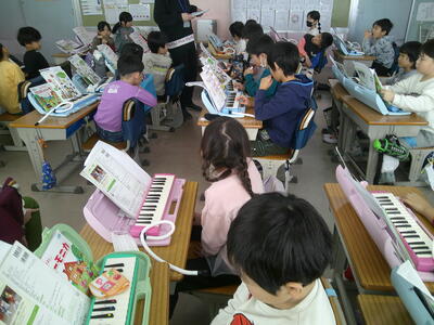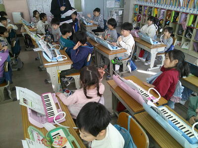 鍵盤ハーモニカのテストを行っていました。