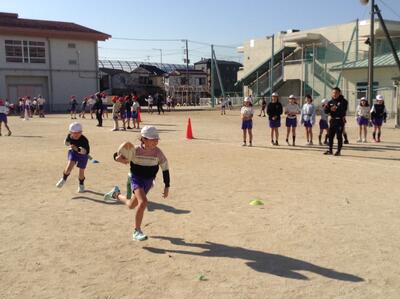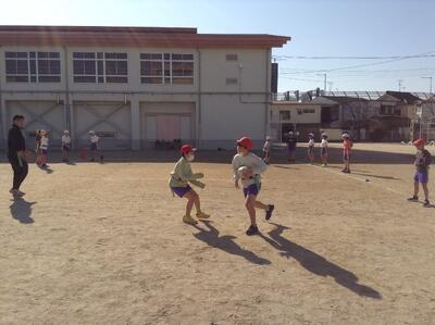 今日も穏やかな気候でした。4年生のタグラグビー教室が校庭で行われましたが、元気いっぱい走り回って活動していました。