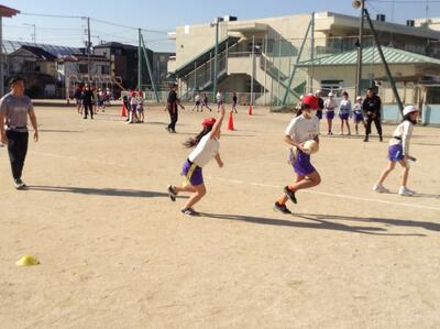 4年生 タグラグビーの授業です。