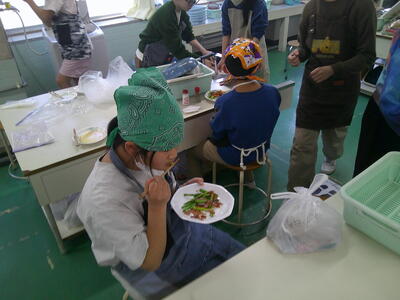 炒めが終わった人から、盛り付けてまでできたら、食べ始めます。