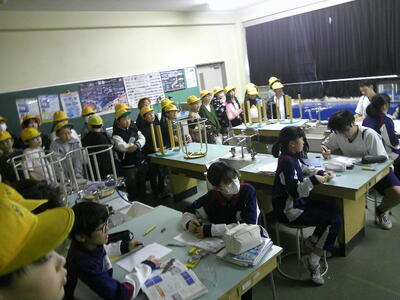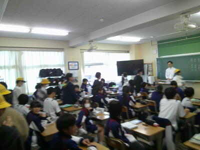 講師 青木清子さんは当時、4歳だったそうです。ご自身の体験を通して、友達の大切さ、学ぶことの大切さを話していただきました。また、戦争の悲惨さ、愚かさ、絶対に繰り返してはいけないということを、私の後に第二走者としてバトンを受け継ぎ、語っていってほしいと話されました。子どもたちは、皆真剣に話を聞いていました。