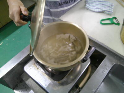 かたい具材は、最初に入れておく、事前の学習を実践できています。