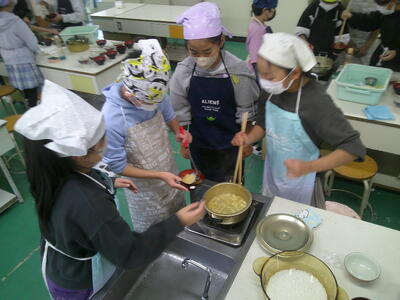昨日に引き続き、今日もご飯とみそ汁の調理実習を行いました。