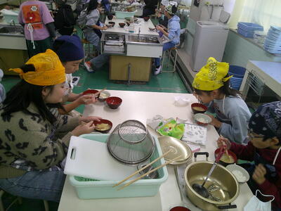 仲間で協力して活動を行っています。みそを溶かして入れることも、交代交代、全員が経験できるように考えていました。