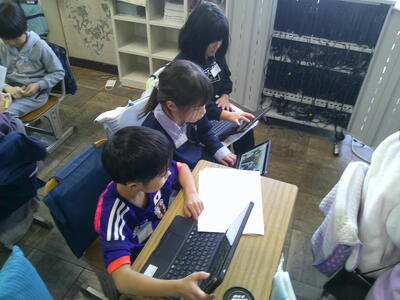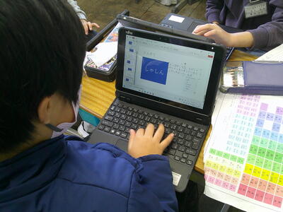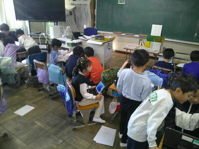 朝学習「稲書きタイム」です。3年生と5年生を覗きました。