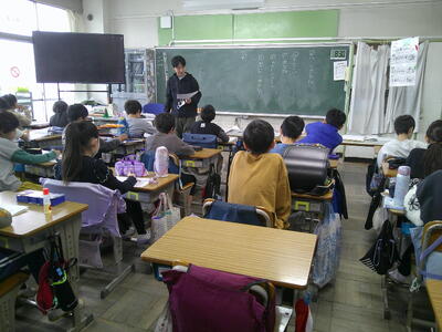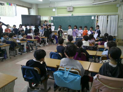 今日は晴天の中でも肌寒い一日でした。そんな中、3年生の子供たちは市内巡りに出発しました。ランドセルではないリュックを背負って登校してきた3年生は、とてもいい表情をしていました。