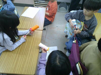 生活科のおもちゃ作りと;国語の説明書づくりを同時進行で進めていました。