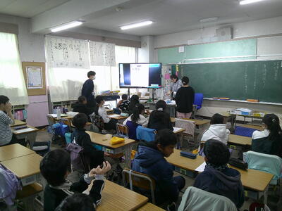 ゲーム説明を行っていました。この学習が2回目なので、安全に取り組めるよう、基本的な約束事を伝えていました。