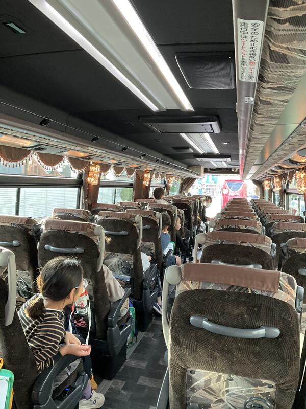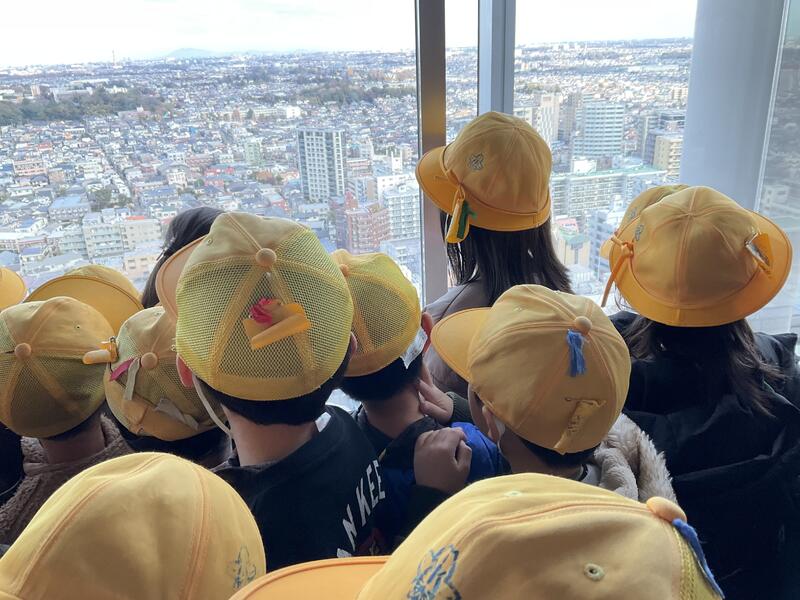 「スカイツリーだあ!」子どもたちはバスの中でも元気いっぱいです!