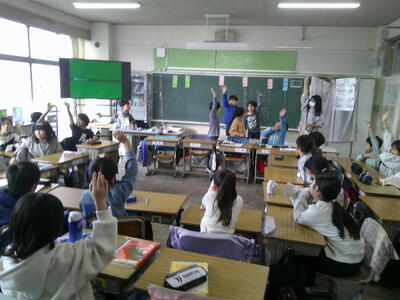 学級の中でチャンプ本を選ぶのに、目を伏せて多数決をとります。