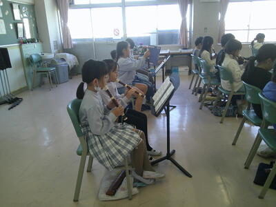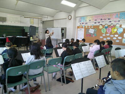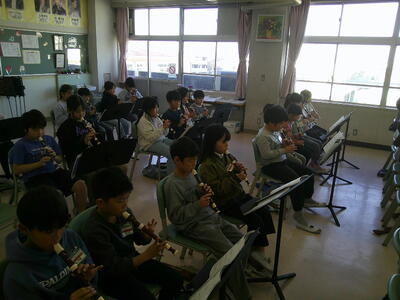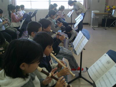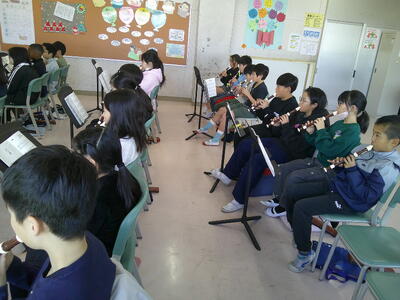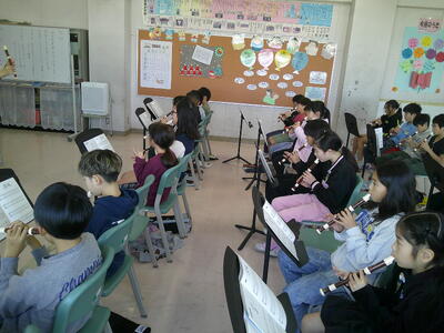 「猫吹いちゃった」の曲でリコーダー練習です。