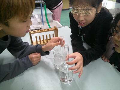 ペットボトルはお湯に入れると膨らみ、氷水に入れるとへこむ。なぜ、へこんだり膨らんだりするのか?その疑問からスタートしました。