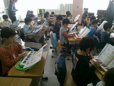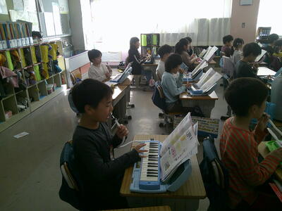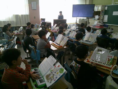 ドレミファソの音となかよくなろう。をめあてに、鍵盤ハーモニカを弾いたり、歌ったりと楽しく活動ししています。