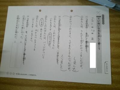 ていねいな文を正しく書くプリンに取り組んでいました。