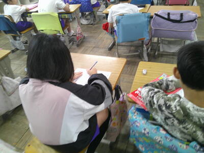 子供たちは以外と聞き取り、書くことができていました。素晴らしい。