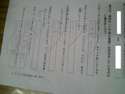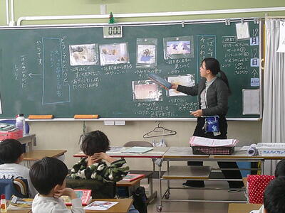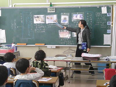 この学習では、場面の様子について登場人物の行動を中心に想像を広げながら読むこと、文章の内容と自分の経験とを結び付けて、自分の思いや考えをまとめ、発表し合うことを重点に置いて取り組んでいます。