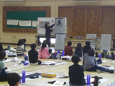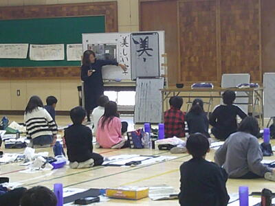 國吉先生の書道教室に通われている児童もいて、子供たちも嬉しそうに練習に励んでいました。