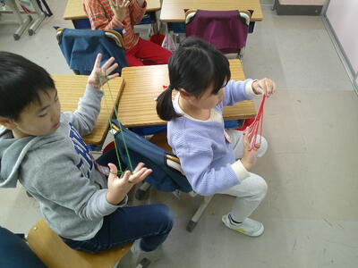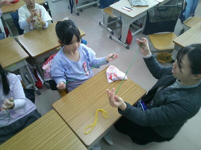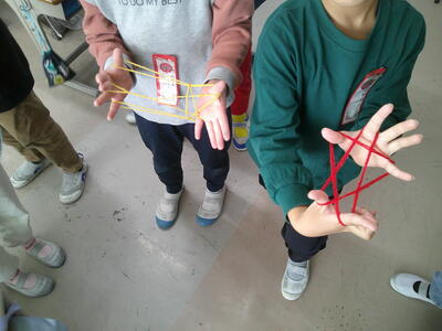 昔遊びに親しむ活動でした。今日は、あやとりに取り組んでいます。